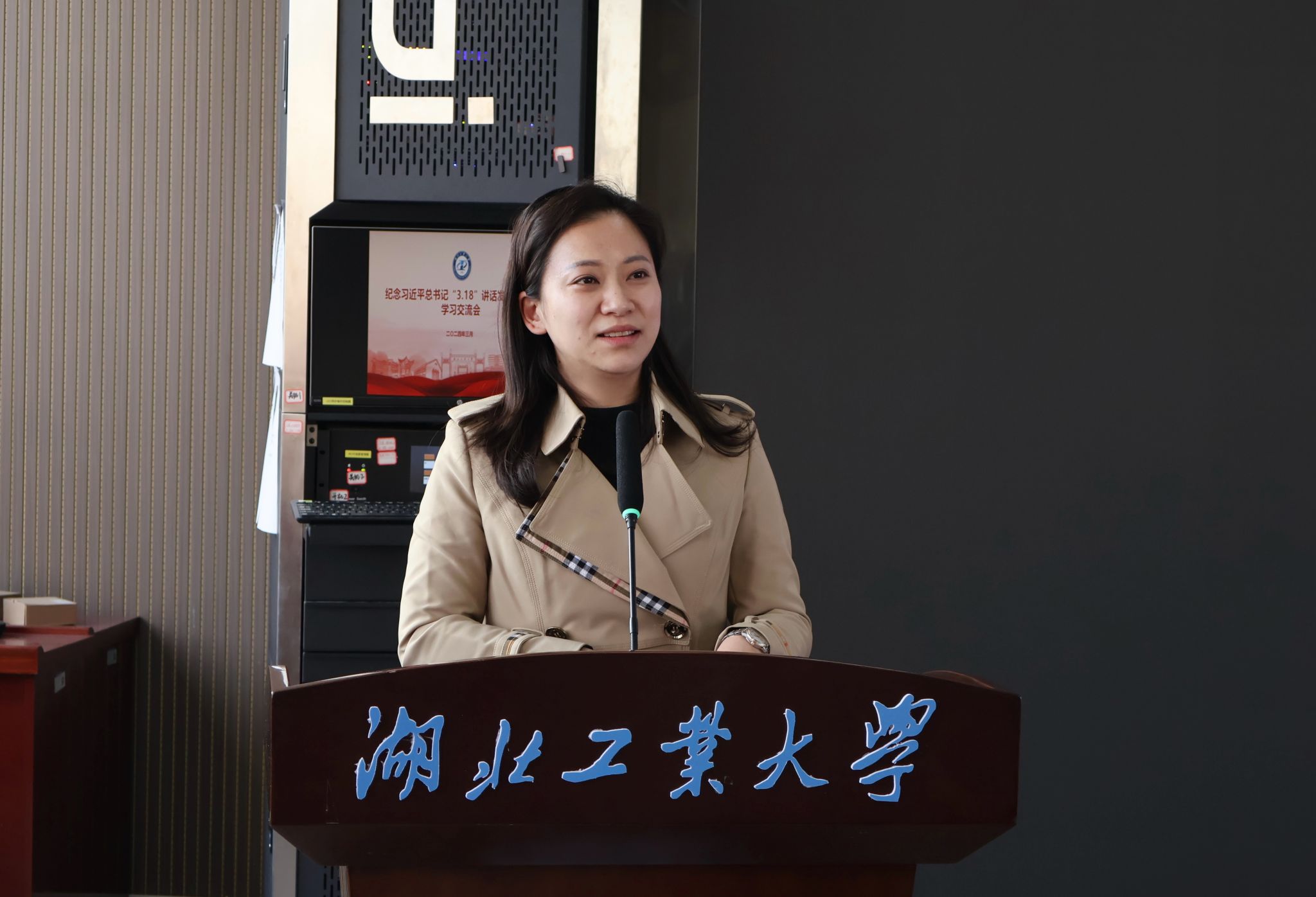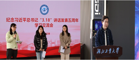 夏襄君、杨文茜、李早、尚文杰三位新进教师结合3.18讲话精神中的“六要”,谈了自己的学习体会。尚文杰还分享了他作为学校首次派出的青年代表,随湖北青年代表团赴俄罗斯参加2024世界青年联欢节的学习交流情况。