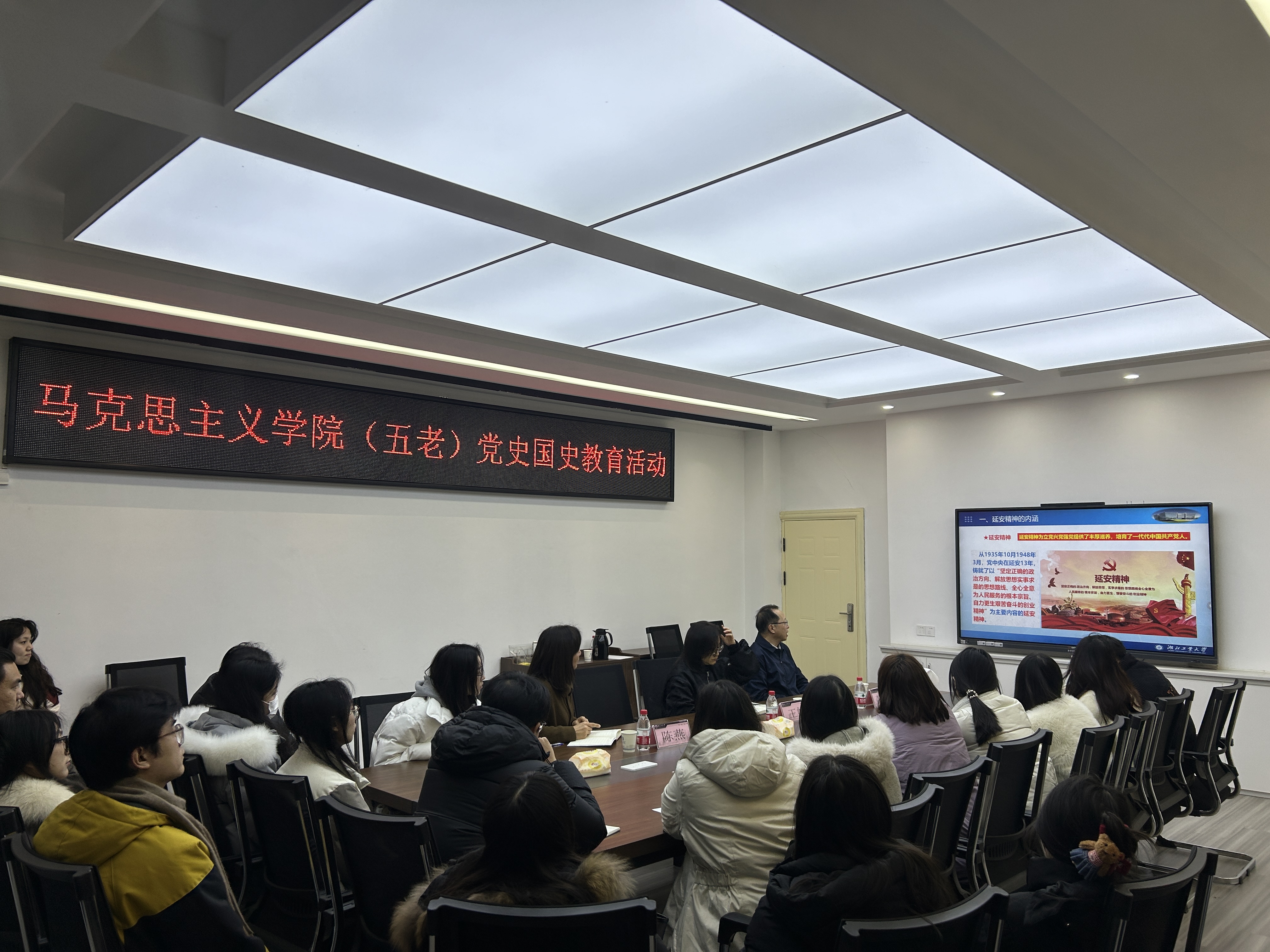 为深化党史国史学习教育、厚植红色基因、筑牢信仰之基,12月26日,马克思主义学院举办“五老”党史国史教育活动。活动邀请湖北省延安精神研究会理事、湖北工业大学关工委副主任李学锋作专题报告,学院党委书记陈燕、副书记王娇出席活动,全体研究生参与。
