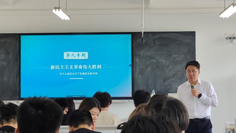 4月15日,中国近现代史纲要教研部主任丁君涛在课堂上进行了教学展示,学院党委书记陈燕、副院长石裕东及部分教师参加观摩。