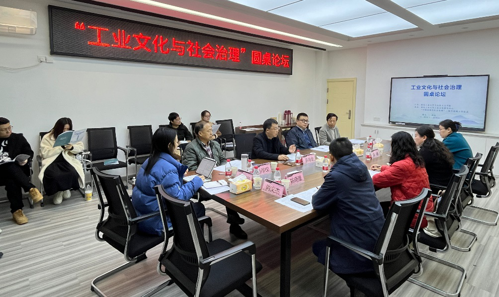 (供稿:李睿 杨炯毅 摄影:彭进 审稿:丁银河)12月6日,“工业文化与社会治理”圆桌论坛在湖北工业大学成功召开。会议由湖北工业大学马克思主义学院主办、湖北工业大学工业文化研究中心和“中国近现代社会治理”二级学科硕士学位点承办。论坛深入研讨工业文化和社会治理学术前沿、推进工业文化研究中心平台建设和“中国近现代社会治理”学位点建设相关问题。中国地质大学(武汉)马克思主义学院副院长李海金教授、武汉大学景观规划设计研究院副院长、前沿交叉学科研究院(国家文化发展研究院)韩晗教授做主旨报告,工业文化研究中心全体教师和社会治理硕士学位点师生代表参会。会议由湖北工业大学工业文化研究中心主任、“中国近现代社会治理”二级学科硕士学位点负责人李睿教授主持,湖北工业大学马克思主义学院院长丁银河出席会议并讲话。