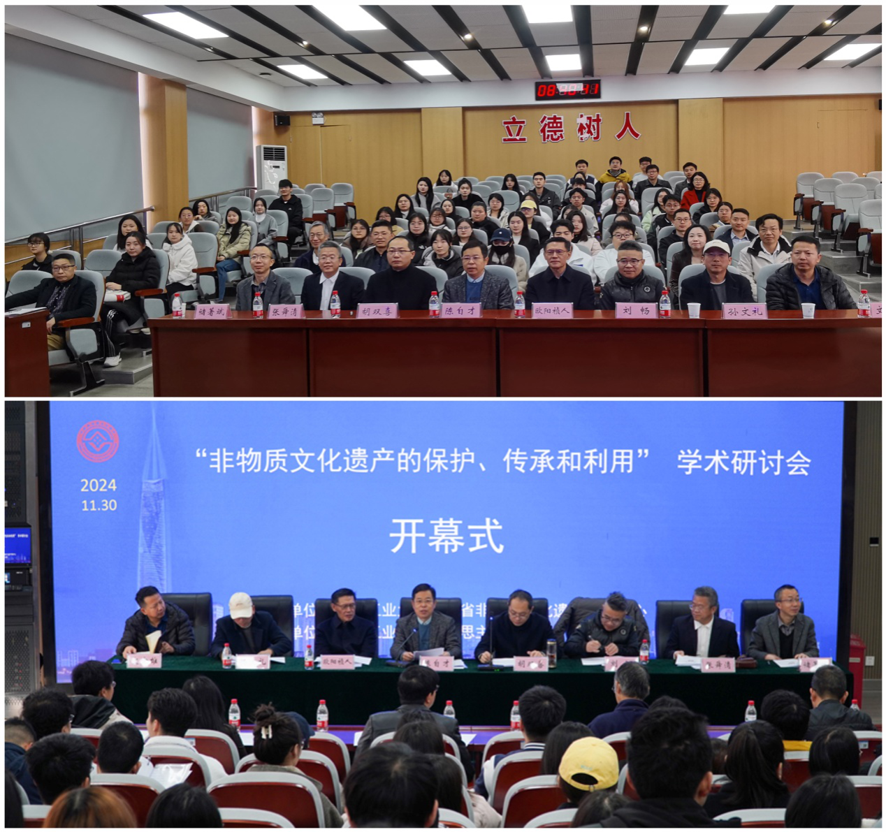 (供稿 张传娟 摄影 张欣、孙悦、颜姜毓、雷铭宇 审核 丁银河)11月30日-12月1日,“非物质文化遗产的保护、传承和利用”学术研讨会在我校召开。此次研讨会由湖北工业大学湖北省非物质文化遗产研究中心主办,湖北工业大学马克思主义学院承办。来自湖北省文化和旅游厅、湖北日报的领导专家和武汉大学、中南财经政法大学、武汉纺织大学、江汉大学、湖北大学、武昌理工学院、仙桃成人教育中心(仙桃开放大学)、鹤峰坛子洞古茶树保护中心等单位的近100名专家学者、博士研究生、硕士研究生以及企业、其他社会各界人士参加了研讨会。