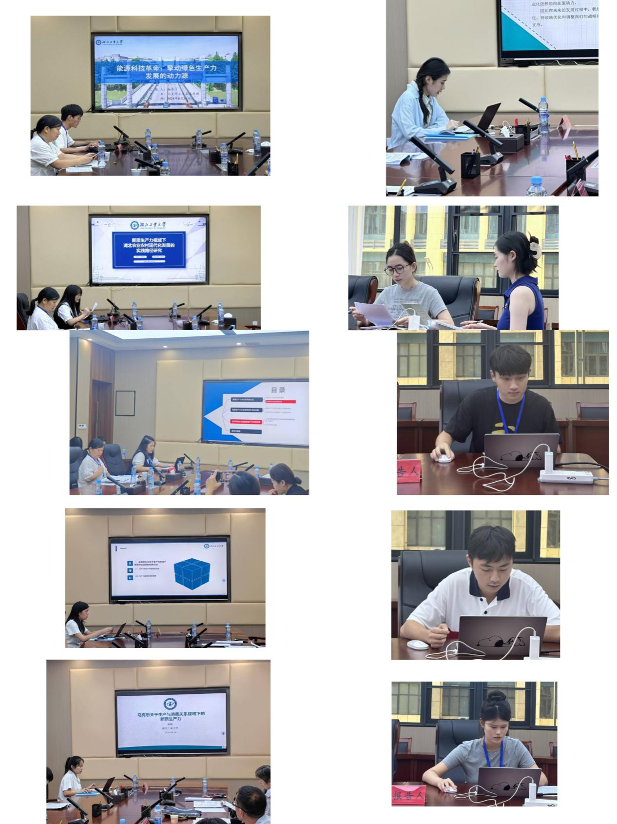 在研究生论坛中,我院研究生杨秀江、柳思敏、仲霄、石含章、孙悦、杨悦、侯钦玥和黎萍、熊文俊、张博胜、卓黄湘婷分别就自己的论文《能源科技革命:擎动绿色生产力发展的动力源》《新质生产力湖北农业农村现代化发展的实践路径》《生态科技文化在新质生产力背景下的作用与价值》《新质生产力的社会变革意义——社会基本矛盾视角》《马克思关于生产与消费关系视域下的新质生产力》《以新质生产力赋能新型工业化发展的策略路径》《新质生产力推动中国式现代化内在逻辑实现路径》《新质生产力视域下高校思政课教师能力提升研究》《新质生产力的科学内涵﹑动力机制及其路径探究》《“构建新型生产关系 加快发展新质生产力”的三重逻辑》在研究生论坛进行交流发言。期间,同学们认真听取了在场评委老师的指导建议,展现出我院学子良好的专业素养和学术品质。据悉,此次研讨会共收到全国硕士、博士研究生投稿近百篇。