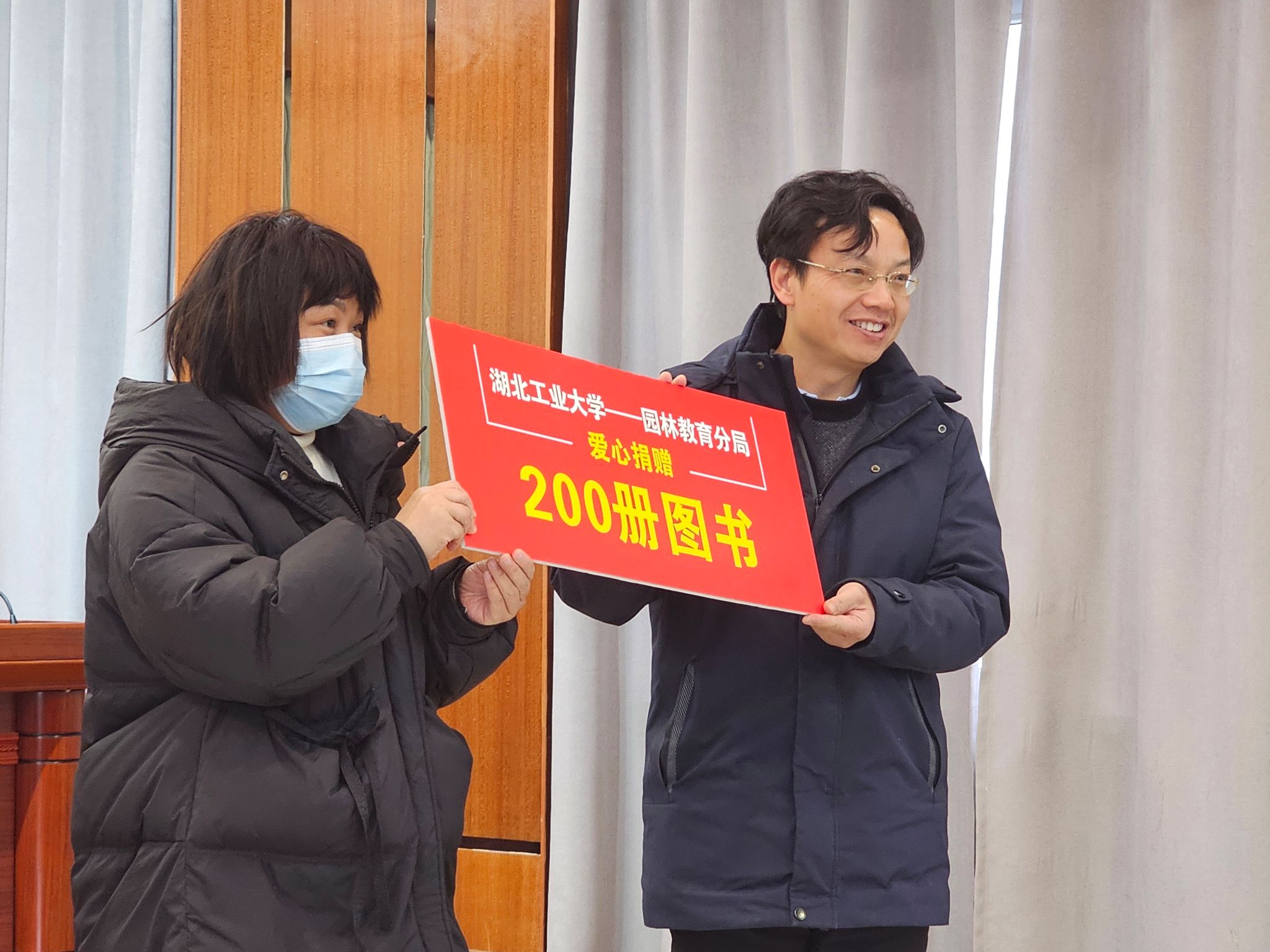 图3.湖北工业大学向潜江市园林教育分局捐赠200册图书