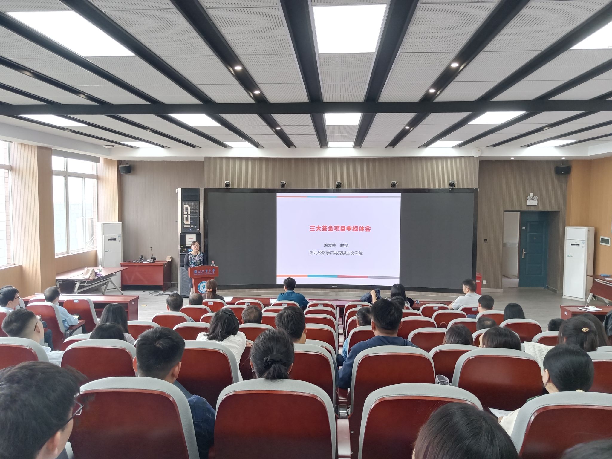 会议第二阶段邀请了湖北经济学院涂爱荣教授作《三大基金申报体会》学术报告。涂爱荣详细介绍了国家社科基金的申报流程和自身申报心得,鼓励广大教师们不怕失败、勇于交流、坚持不懈地开展教学科研工作。陈燕作大会总结,她提出,希望全体教师向涂爱荣教授学习,做乐在其中的科研人,不断提升自身的科研能力。