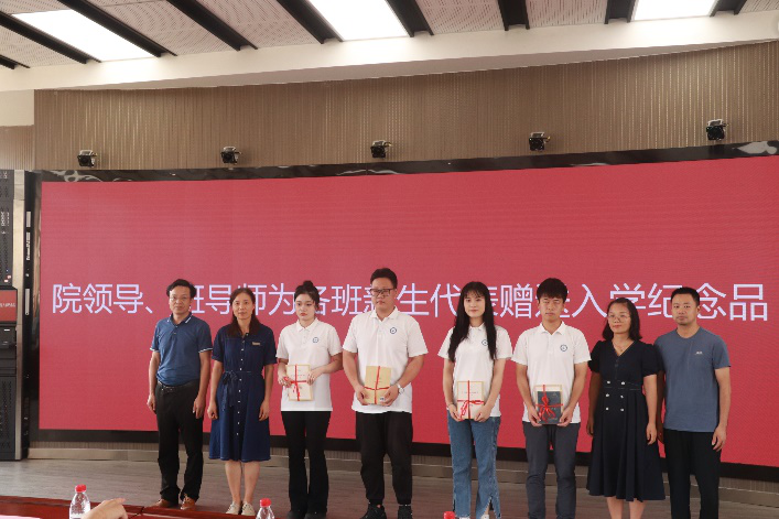 随后,党委书记陈燕、院长丁银河以及班导师为四位新生代表新生赠送入学纪念品。