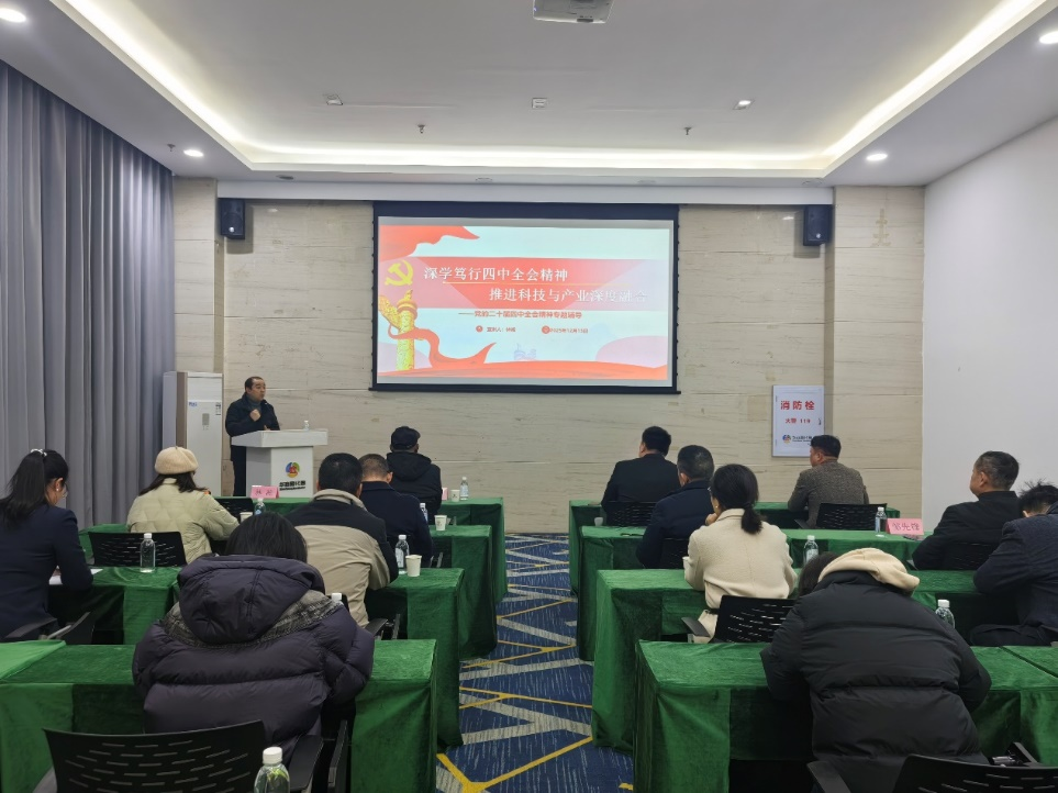 宣讲中,林凇以“深学笃行四中全会精神,推进科技与产业深度融合”为题,紧扣党的二十届四中全会精神核心要义,结合民营经济发展实际,从全会精神的时代背景、核心内涵、实践要求等方面进行了系统阐释。他还以华商孵化器的建设为例,重点解读了全会关于激发各类经营主体活力、优化民营经济发展环境的相关部署,深入剖析全会精神与企业高质量发展的结合点,强调在“十五五规划”中产业创新和科技创新的重要性,为在场企业代表精准把握政策导向、明晰发展路径提供了全方位的指导。