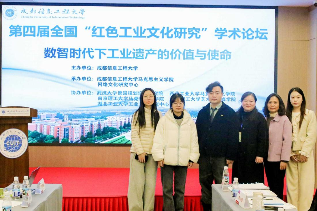 (李睿 杨炯毅 撰稿 丁银河 审核)11月22日,第四届全国“红色工业文化研究”学术论坛在成都举办。本次会议由成都信息工程大学主办,成都信息工程大学马克思主义学院承办,湖北工业大学工业文化研究中心等单位协办。来自清华大学、西北工业大学、电子科技大学、厦门大学等全国20余所大学的60余名专家学者齐聚蓉城,围绕红色工业文化传承、工业遗产保护利用等核心议题展开深入研讨。中心教师李睿、李金玉、尚文杰和研究生杨炯毅、吴芷君、周雨涵以文赴会。